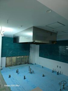 この度、キッチンの中心設備となる、大規模な排気フードの設置工事が完了いたしました。