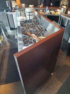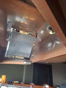 カウンター越しに見える排気フードは、お客様の視線に最も触れる設備の一つです。私たちは、フードを単なる「排気のための道具」とは考えておりません。