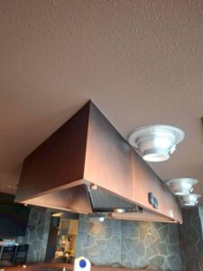 一見すると、年月を重ねた骨董品のような重厚感を放っていますが、これは最新の技術によって生み出された新品の排気フードです。