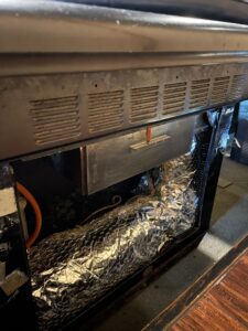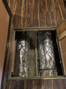 工事では、万が一の火災に備え、断熱材を巻きつけることで延焼を防ぐ対策を施しました。