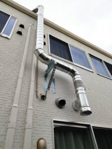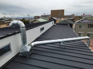 福岡県大川市にある介護施設の調理場排気に関して、近隣住民から「騒音がうるさい」「臭いが気になる」というクレームが寄せられていました。そこで、壁面に設置していたファンを屋根上へ移設し、騒音を軽減。さらに、排気の吹出し方向を建物の反対側に向けることで、臭いの拡散を最小限に抑える対策を実施しました。