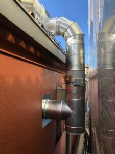 福岡県福津市に新たに開業する焼鳥店にて、厨房焼き場のフード施工を担当いたしました。排気口まで距離がある現場条件を考慮し、自由な場所に設置できるシロッコファンを採用。排気口は屋根上へ立ち上げる設計とし、周囲への煙被害を防止することで近隣対策も万全です。今後も安全かつ快適な調理環境を維持し、お客様に美味しい焼鳥を提供できるようサポートいたします。