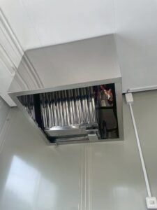 限られたスペースを最大限に活かし、フライヤーフードの設置を行いました。