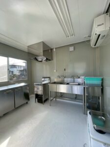 今回は、行橋市の住宅地にあるプレハブを利用した、唐揚げテイクアウト専門店の厨房改修工事をご紹介します!